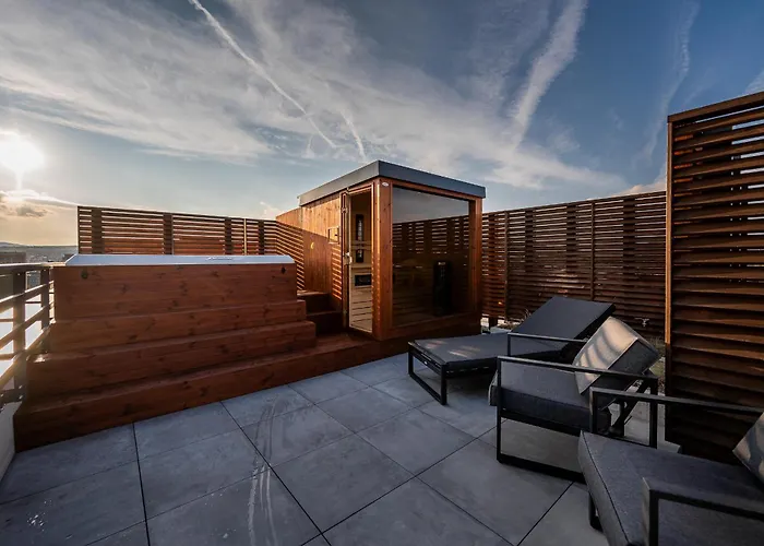 Alloggiando nell'Appartamento Skyluxe Old Town Penthouse Košice gli ospiti possono rilassarsi sulla terrazza e si trova a soli 1 km da Východoslovenská geléria. Gli ospiti potranno godere di una jacuzzi e una saunain quest'appartamento, situato vicino aC Tabacka Kulturfabrik.